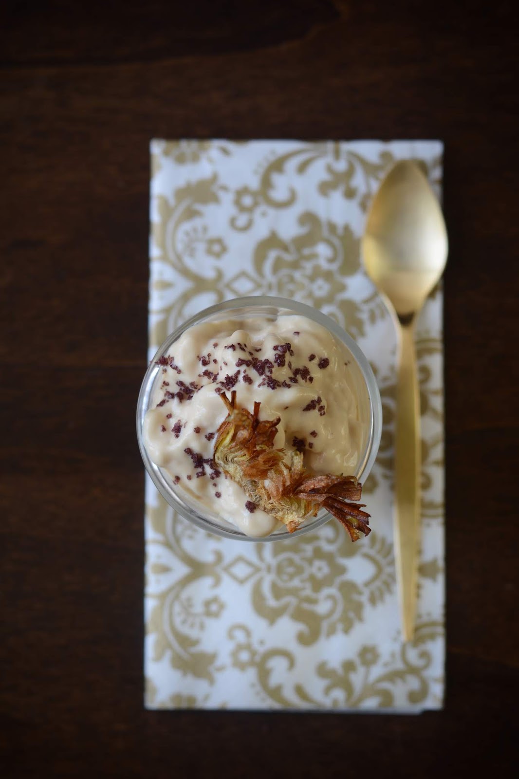 que presentación tan bonita ,y el nombre ya me deja tirada por los suelos Capuccino de alcachofa suena estupendo,y ¿ el polvo de naranja?¡¡ pero de donde sacas las ideas!! que invento