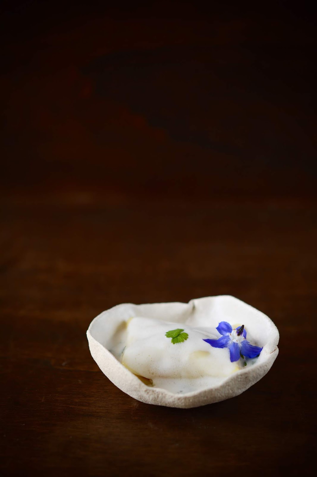 La salsa es fruto de varias pruebas que hice estas navidades y al final logré una combinación de sabores que me pareció perfecta para este ravioli. Una base de leche de coco y curry, muy aromatizada por el lemon grass, el jengibre y el coriandro, y ese puntito picante que le aporta el chile rojo.