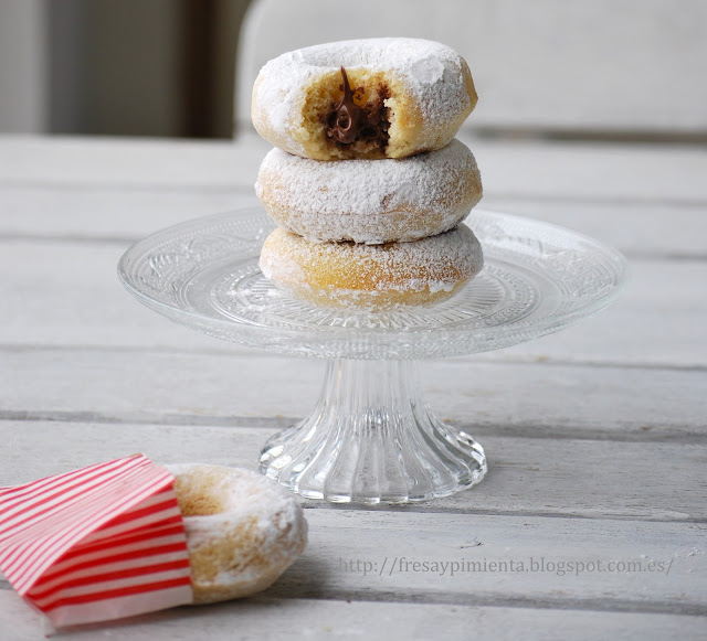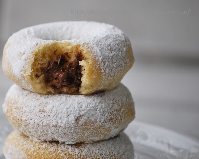 Wowwww me dejas sin palabras! esto lo hago sí o sí! casualmente hace un par de días nos compramos unos minidonuts rellenos de crema de cacao buenísimos, y mientras los comía pensaba…"esto tengo que aprender a hacerlo yo en casa" y zas! gracias por la receta 😉