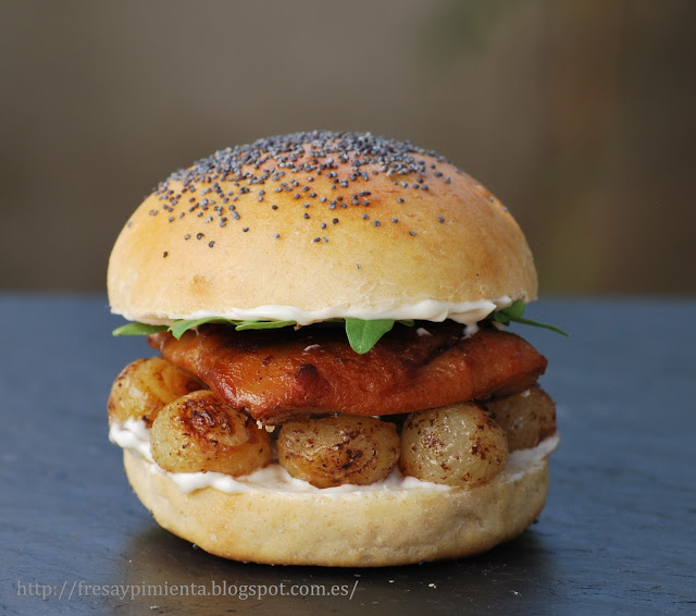 Una “burg” realmente sorprendente! No es que esté loca, a mi no se me ocurre confitar un cochinillo sólo para hacer una burg, la idea no es esa, sino que la propuesta se me ocurre para aprovechar los excesos que he hecho de un cochinillo confitado, que ya de por sí es de lo más sabroso.