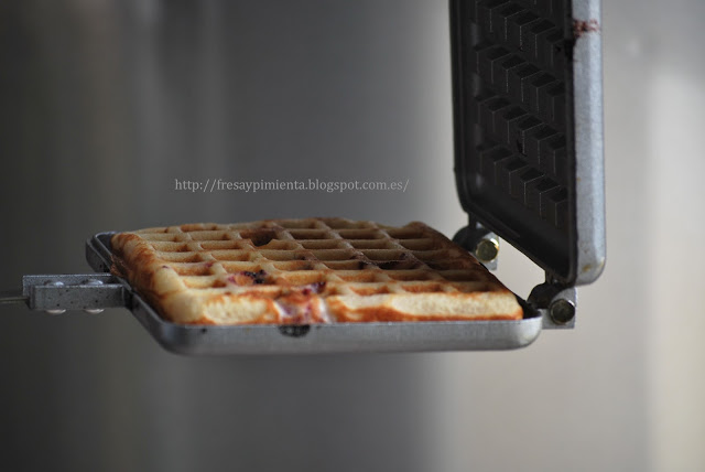 Para realizar esta receta he utilizado una gofrera que va directamente  al fuego , un artilugio un tanto antiguo, pero sin duda la cocción al fuego me parece la más idónea.