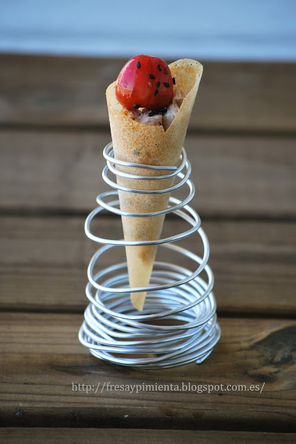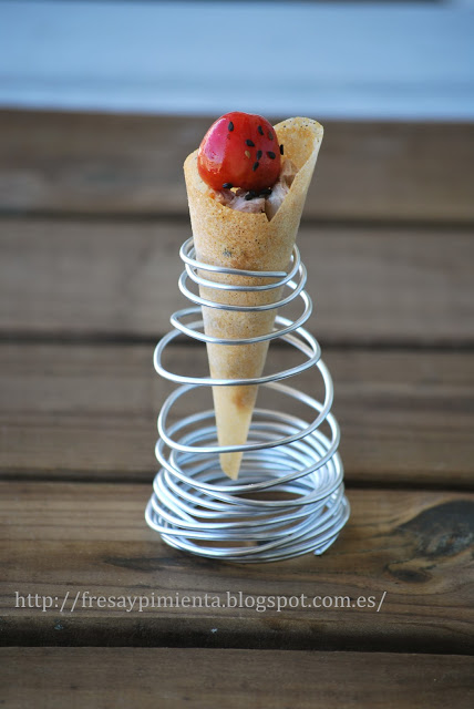 WOW! Tengo pendiente hace tiempo probar un cucurucho como entrante, me llama mucho la atencion, son sorprendentes, originales y deliciosos, el tuyo es de matricula como siempre, eres mi gastroblogger favorita! Un abrazako!