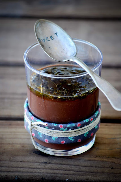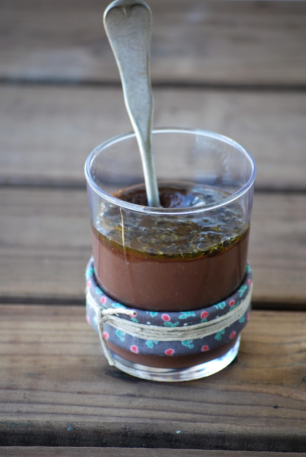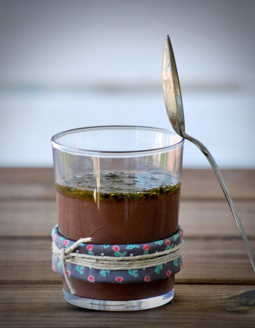 Unos vasitos muy tentadores para este verano, con un intenso sabor a chocolate que contrasta con el punto ácido y dulce que le aporta el sirope de fruta de la pasión.