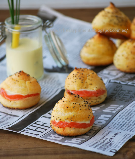 uhmm, que delicia, adoro la pasta choux y con un relleno salado tiene que estar de muerte.Interesante la salsa, me la apunto. Un beso!
