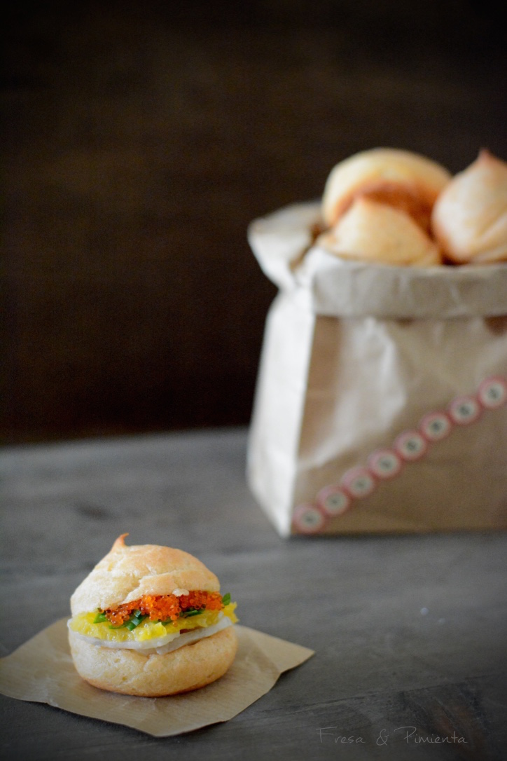 En este caso los he rellenado de anguila ahumada, naranja, rúcula y huevas tobiko. Bon appétit!