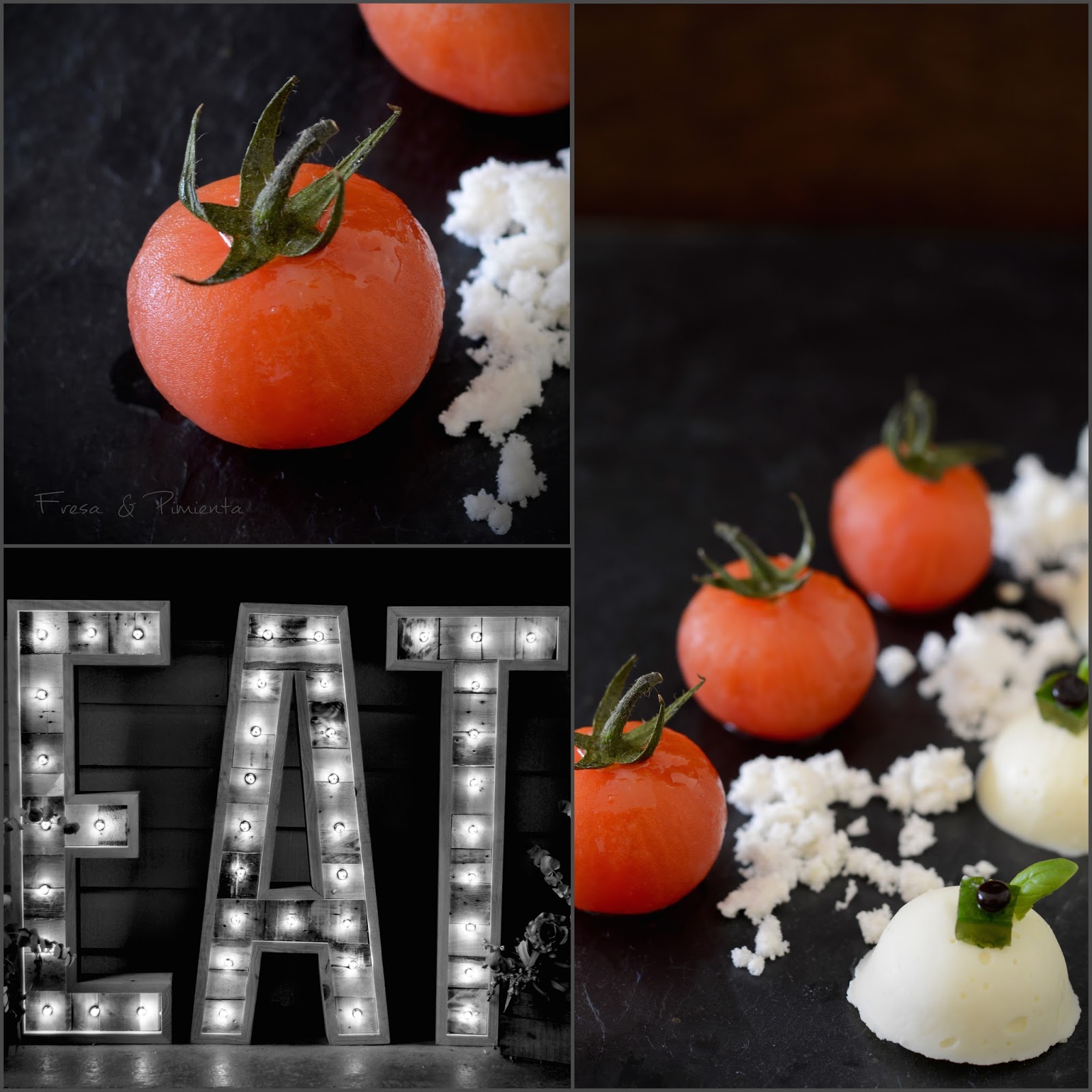 fresca, aceite de oliva y sal. El reto para mi era elaborar una ensalada Caprese que mantuviera la esencia de su sabor casi intacta, pero modificando todas sus texturas, de ahí ha surgido este entrante refrescante.