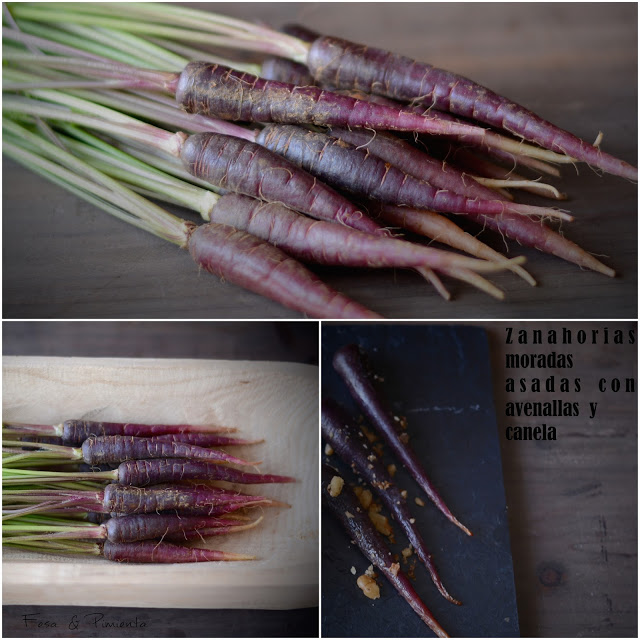 Para elaborar las zanahoria, las limpiamos y las colocamos en una bandeja con un hilo de aceite y una pizca de sal. Añadimos las avellanas picadas y horneamos a 180º durante 20 minutos.
