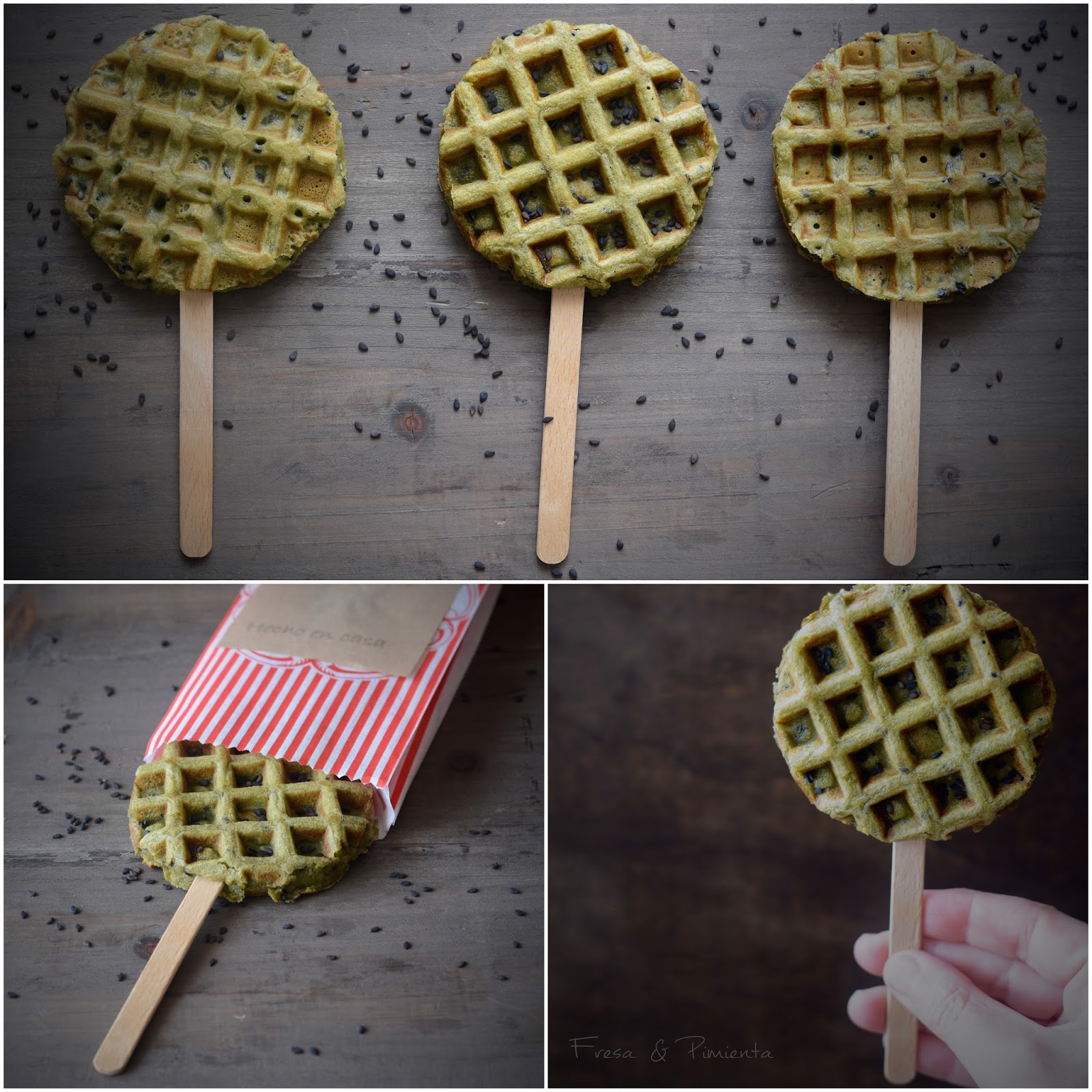 “La imaginación no tiene límites” en este casola imaginación me llevó a pensar en elaborar un gofre salado de Plancton Marino. Un sabroso gofre elaborado con Plancton, con delicioso sabor a mar, ideal para servir como aperitivo o como acompañamiento a un plato principal. La base de esta receta no es muy distinta a la de un brioche, pero en este caso le he dado el formato característico de los gofres. Como guiño le he puesto un palo de madera, para servirlo emulando un helado, aunque esta receta no se sirve helada sino a temperatura ambiente.