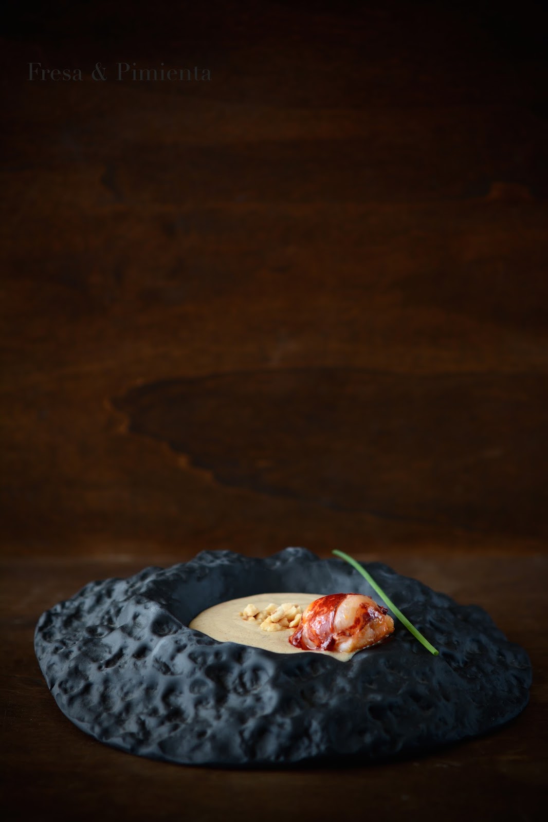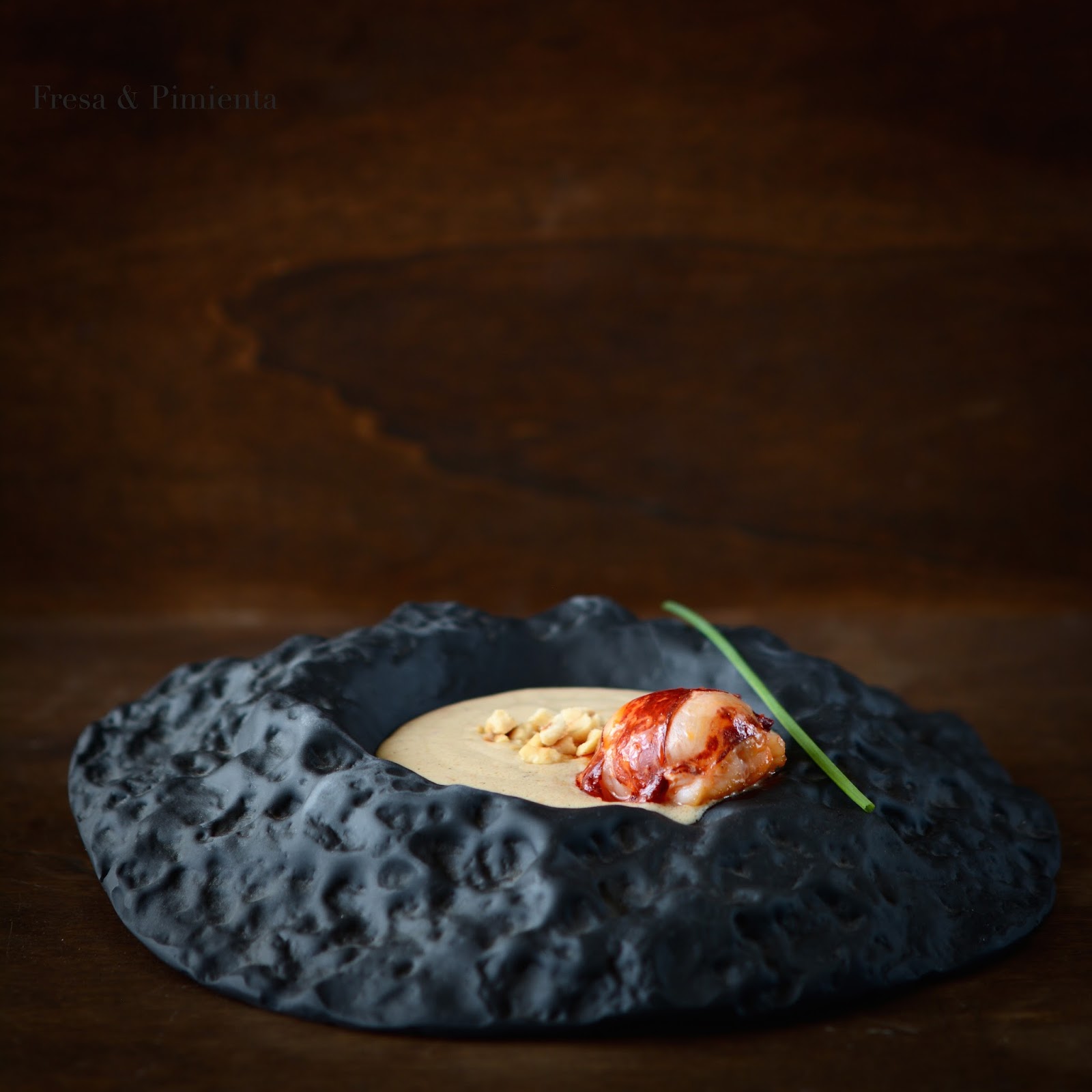 Bogavante, avellanas tostadas, vainilla, mantequilla, cebolla…. una crema aterciopelada de bogavante, aromatizada con vainilla, avellanas tostadas y un medallón de bogavante marcado en mantequilla.