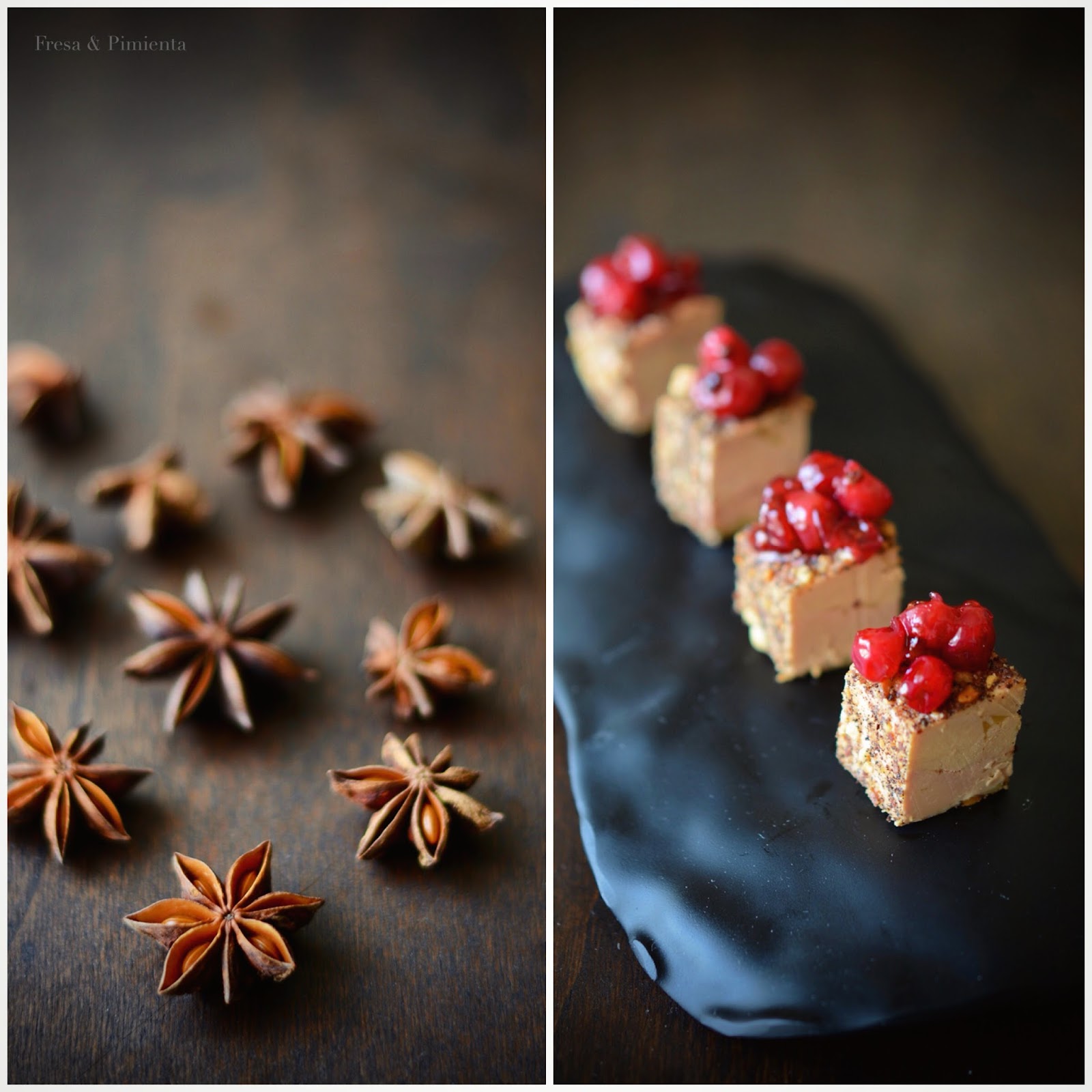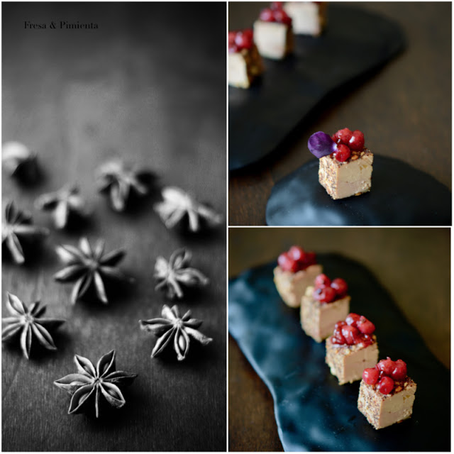 Con la mirada puesta en los aperitivos navideños, os propongo un aperitivo fácil de realizar, aromático, sabroso, festivo y que abrirá el apetito a todos los invitados! Unos dados de foie mi cuit rebozados en polvo de almendras tostadas con semillas de vainilla. Acompañamos el foie con el contraste agridulce de un rápido chutney de grosellas frescas, de corta cocción, al que he incorporado anís estrellado.