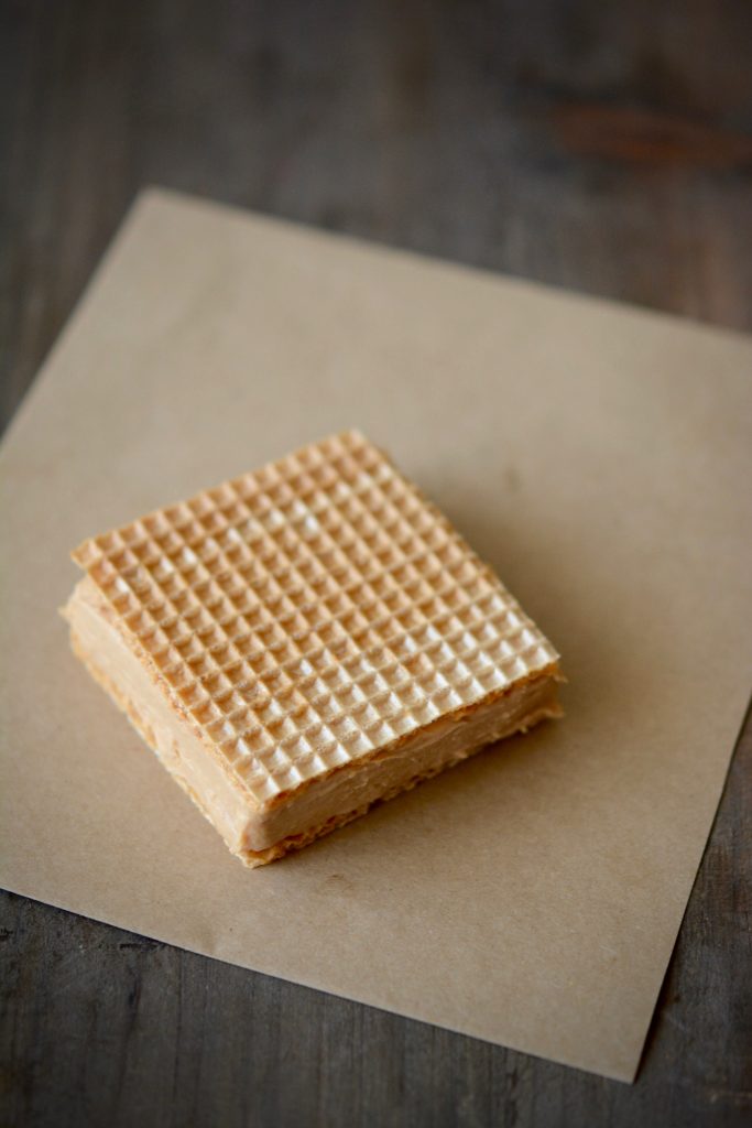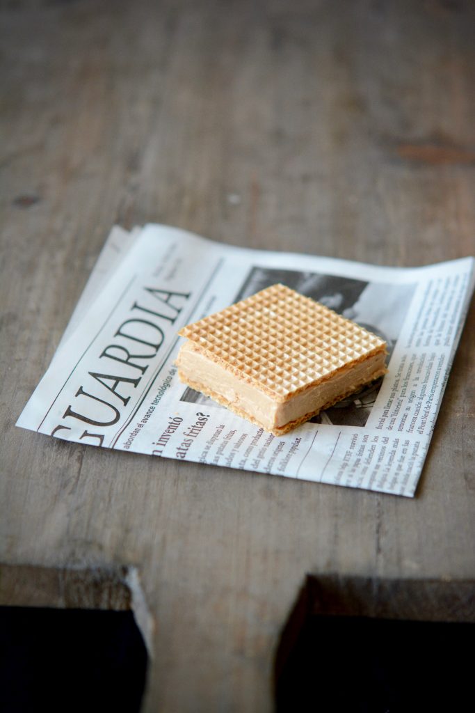 Formamos el corte helado con dos obleas y servimos de inmediato.
