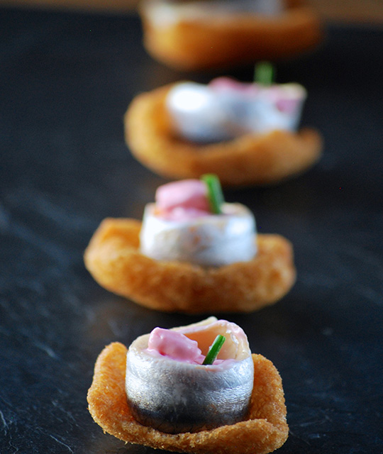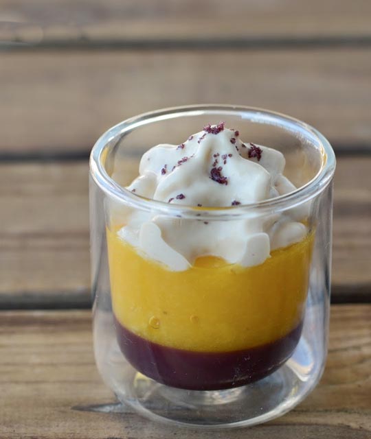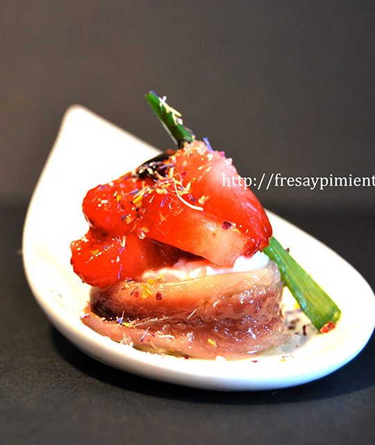 Mil hojas de patata azul con pulpo y mahonesa d...
