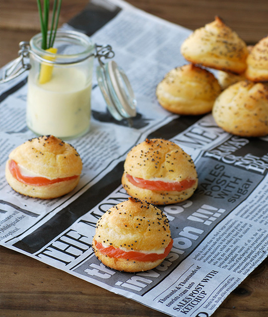 Gofre salado de pimienta rosa y limón, con salmón ahumado ...