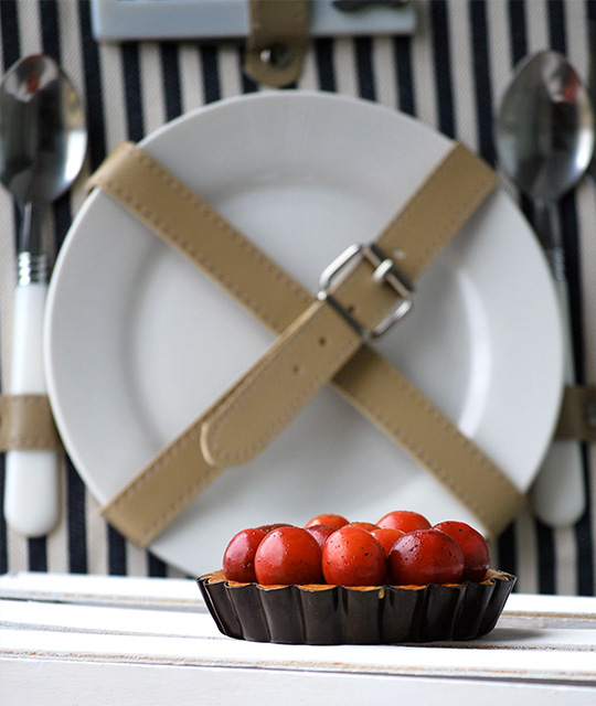 Galette de melocotón y romero con camembert y prosciutto di Parma. ...
