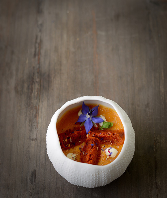 Royal de erizo y yuzu, con puntas de mascarpone y trufa ...
