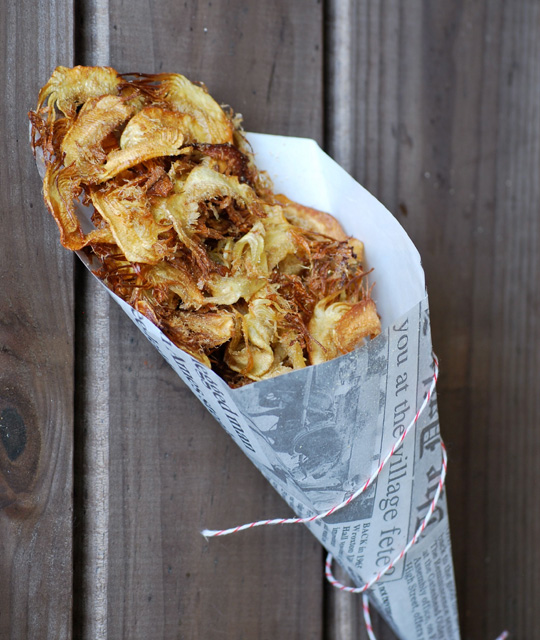 Chips de alcachofa con naranja en polvo y jengibre