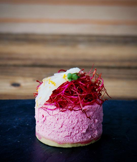 Carpaccio de salmón con caviar de frambuesa y e...