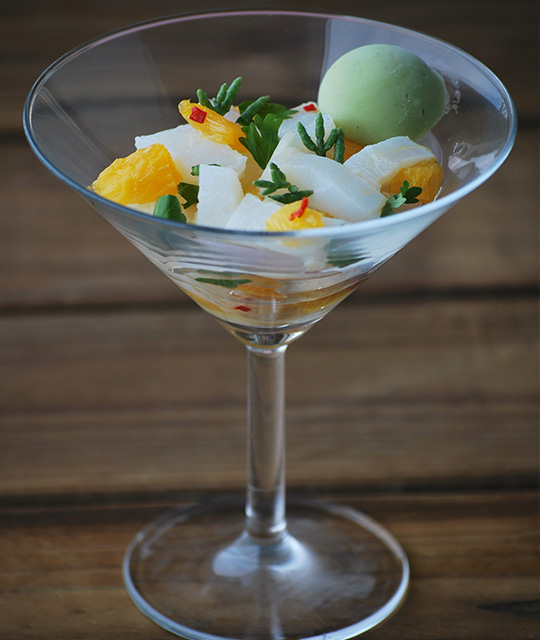Ceviche de bacalao desalado, naranja y salicorn...