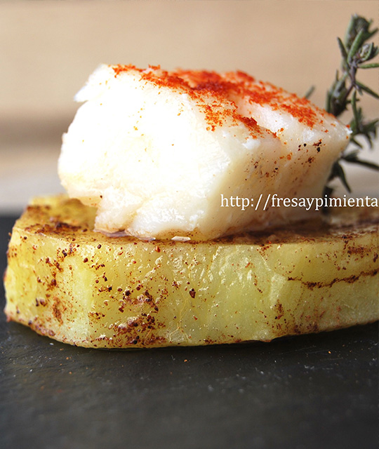 Bacalao confitado en aceite y tomillo fresco s...
